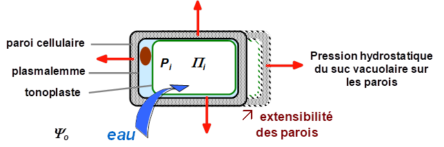 La pression de turgescence est le moteur de l’expansion, en générant de la tension dans les parois qui va permettre leur extension. L’extensibilité des parois et la conductance hydraulique membranaire en sont deux rhéostats.